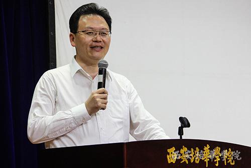 省政协常委、致公党陕西省委会副主委、陕西省红色文化研究院理事长、我校理事长姜波在启动仪式上致欢迎辞,他指出:“在高校开展电影公益放映活动,是深入开展中国特色社会主义宣传教育,落实中共中央办公厅印发的《关于培养和践行社会主义核心价值观的意见》精神的重要举措,引导大学生树立正确的世界观、人生观、价值观的有效途径,对于校园文化生活的丰富及提高大学生的综合素质有重要意义。”