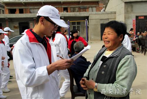 ①我校红十字会的志愿者们开展“春暖社区计划”,为长安区皇甫村村民演示了心肺复苏术,并且开展了问卷调查活动,记录并询问老人的身体状况,为村民在医疗卫生知识普及,突发疾病紧急处置提供服务,并为孤寡病残老人及留守儿童提供关爱和资助。