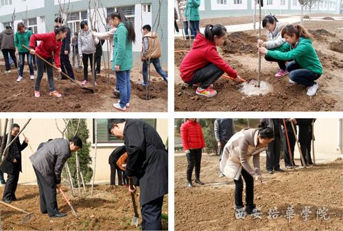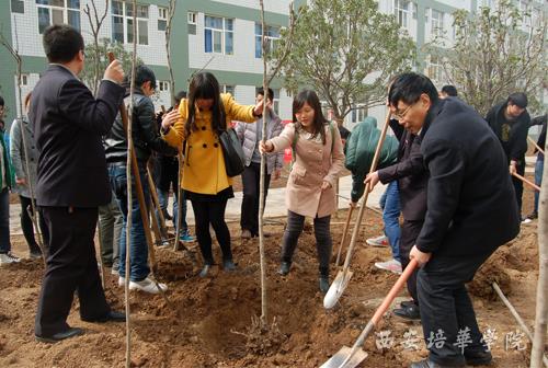 我校积极响应共青团中央学校部、新浪微博联合发起的第四届新浪微博全国大学生绿植领养活动,鼓励大学生亲身参与绿色植物种植行动,唤醒大学生环保意识。3月11日至12日,我校相继开展绿植领养、参观绿植基地、校园栽种花木等多种形式的环保活动,校机关第五党支部和中兴电信学院师生在我校明德楼左侧及21号公寓后开展植树活动,师生们纷纷以主人翁的意识行动起来,大家挖坑,栽苗,浇水,填土,默契配合,栽种树木、播撒花种,为美丽校园再添新绿。我校副校长、中兴电信学院院长刘应南和学生一起参加了此次活动,并表示,保护环境需要从小事做起, 要树立“爱绿护绿,从我做起”的理念,做到人人营造绿色、人人宣传绿色、人人保护绿色的良好校园氛围。