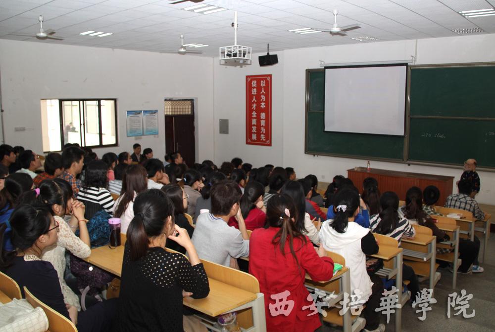 4月18日下午,陕西师范大学国际商学院的Norm Land 教授应邀在我校为学生举办了题为“骑行亚洲——车轮上的中国”的讲座。本次讲座吸引了人文与艺术学院、国际语言文化学院和校英语口语协会200余名学生参加。