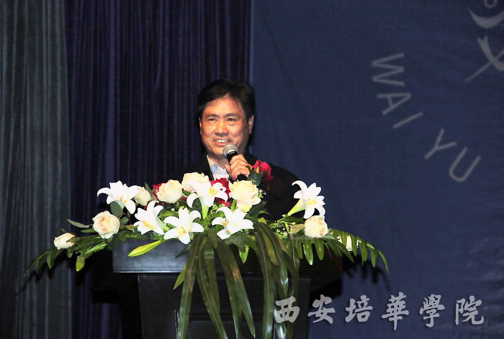 首届外语文化节组委会主任、外国语学院英语系主任甘世安教授致开幕词,他说,外语的学习在于培养一种氛围,达成互动交流,本次外语文化节包括外语歌曲大赛、外语文化沙龙、英语风采大赛、日文朗读比赛、外语演讲比赛等系列活动,希望大家能以本次文化节为契机,积极参与到各项外语活动中,提高自身综合能力。