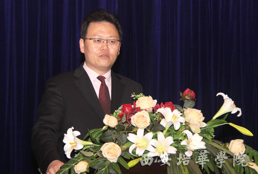 首先,姜波理事长致欢迎辞,他对参会的所有嘉宾表示欢迎,他表示中国杰出青年志愿者——熊宁,用自己的爱心和责任心谱写了她人生华丽的篇章,是当今社会雷锋精神的践行者。2008年培华在青海省玉树藏族自治州建立第一所希望小学建,并命名为“熊宁培华希望小学”;同年在陕西省境内援建11所培华希望卫生室,并成立培华志愿者服务队赴基层医疗机构开展志愿服务活动,2011年培华向陕西省青少年发展基金会捐款100万元,用于资助青少年健康成长。培华学院始终秉承“以人为本 德育为先”的育人理念,重视传统文化教育,以雷锋精神,熊宁事迹为指引,大力支持和参与公益事业,为社会公益事业累计捐款近千万元,为在校生减免学费累计逾5000万元。同时也为为培华学子建立了良好的志愿服务、奉献爱心平台,让熊宁“助人为乐、大公无私、团结友爱、拼搏进取”的高尚品德在培华学子中得到广泛传承。