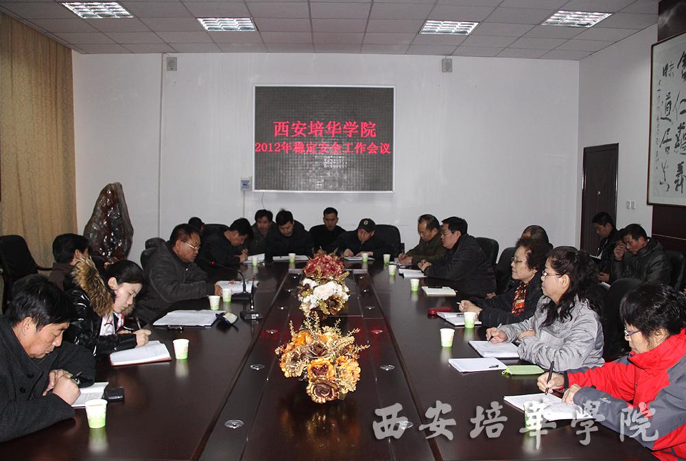 2月24日上午,我校在长安校区会议室召开中层干部会议,传达学习全省2012安全稳定工作会议精神。我校党委书记王斗虎、副院长王根性出席会议,各院(部)、处(室)负责同志参加了会议。会议由副院长王根性主持。王根性副院长传达了省委教育工委副书记、省教育厅厅长杨希文在教育系统2012安全稳定工作会议讲话精神,王斗虎书记就我校2012年安全稳定工作作了部署。