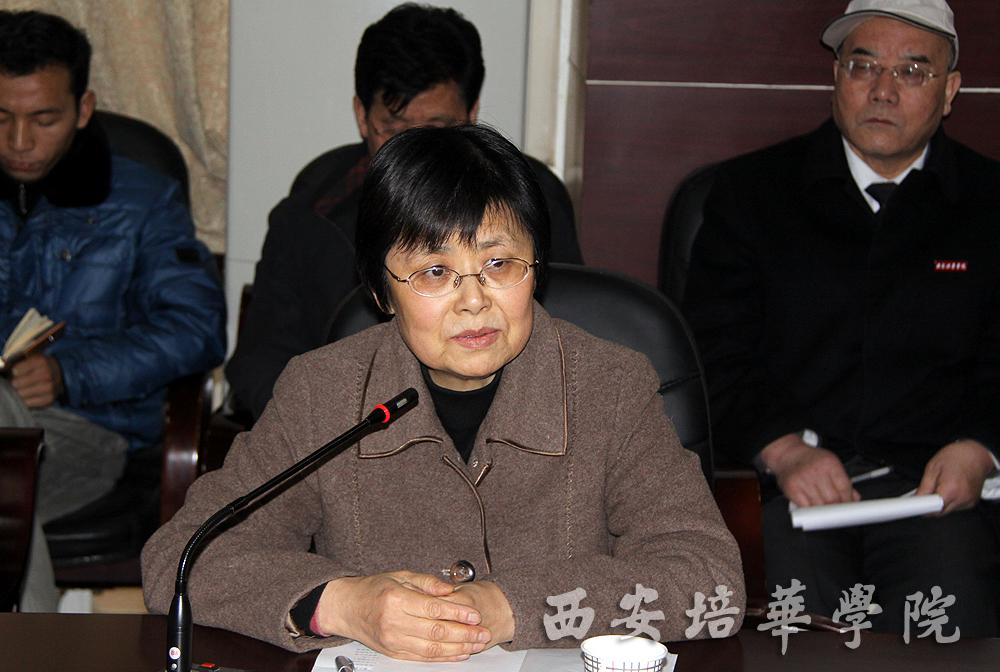 周庆华同志在会上作表态发言,她表示,任职民办高校党委书记是一项全新的工作,她将按照中共陕西省委教育工委、省教育厅的有关规定,认真履行督导专员的职责。她提出,一是加强理论学习,展开关于民办教育规章制度、发展规律的研究,尽快熟悉这一领域的工作;二是要向老同志学习,向实践学习,务实创新,做好本职工作;三是全面履行党委书记职责,紧密团结全校教职工,加强沟通协调,把握发展机遇,狠抓内涵建设,提升办学质量,把学院建设好。