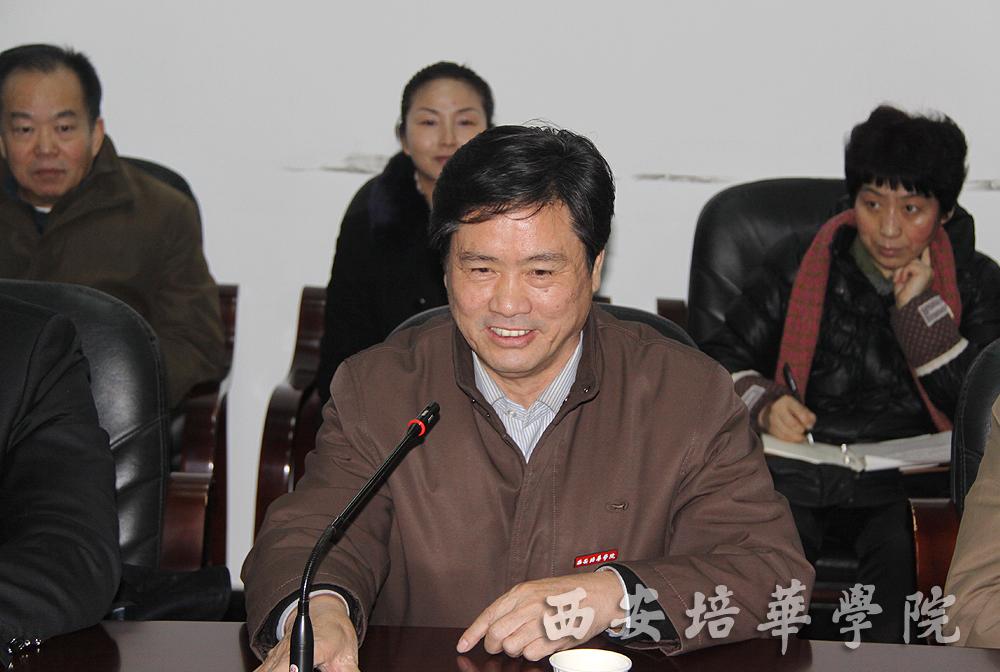 随后,省委教育工委副书记、省教育厅副厅长梁宝林作重要讲话。他指出建立政府督导专员制度,向全省民办高校委派党委书记,是党和政府加强民办高校领导,办好人民满意、党和政府放心的民办高校的重大举措,具有深远的意义。他代表省委教育工委、教育厅对王斗虎同志就西安培华学院党委书记四年来的工作给予充分肯定,对学校所取得成绩表示高度赞赏。他提出了五点希望和要求:一是不断加强党建工作,确保党的政治核心地位,督导专员要明确职责,加强党的思想组织作风建设,充分发挥政治核心作用和战斗堡垒作用,健全制度、科学管理、不断开创党建工作的新局面;二是加强教育教学管理,促进依法治校、依法行政工作,从而达到规范办学,走可持续发展路线;三是逐步加强教师队伍建设,培养更多的优秀人才,使民办教育得到进一步提高和发展;四是加强学生管理,维护校园安全稳定;五是希望培华能贯彻落实好关于陕西省支持和规范民办高等教育发展的会议精神,在校领导班子和周庆华同志的带领下,再创新的辉煌!