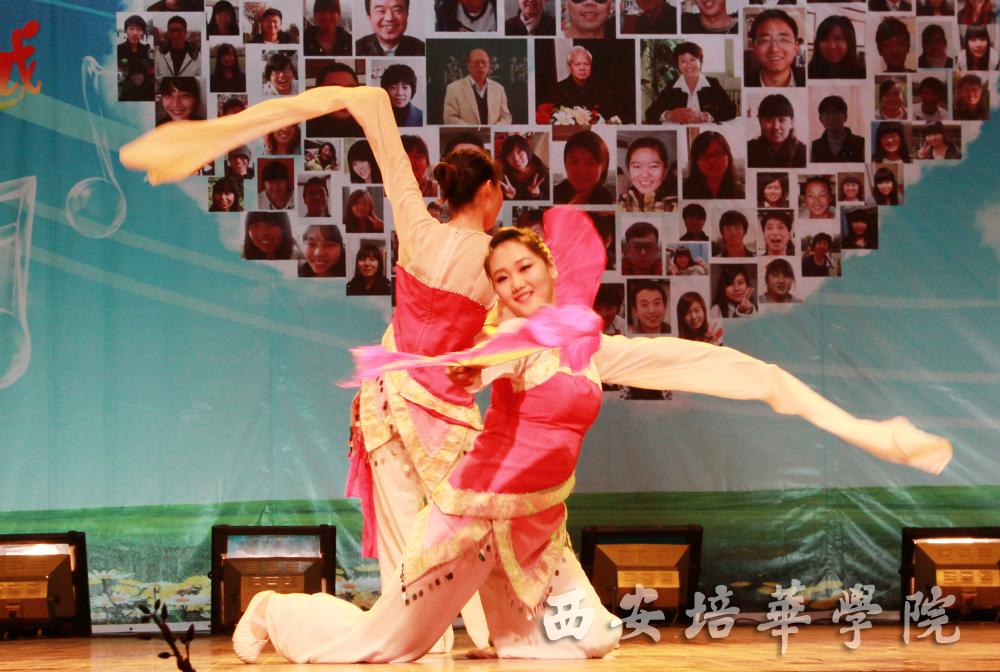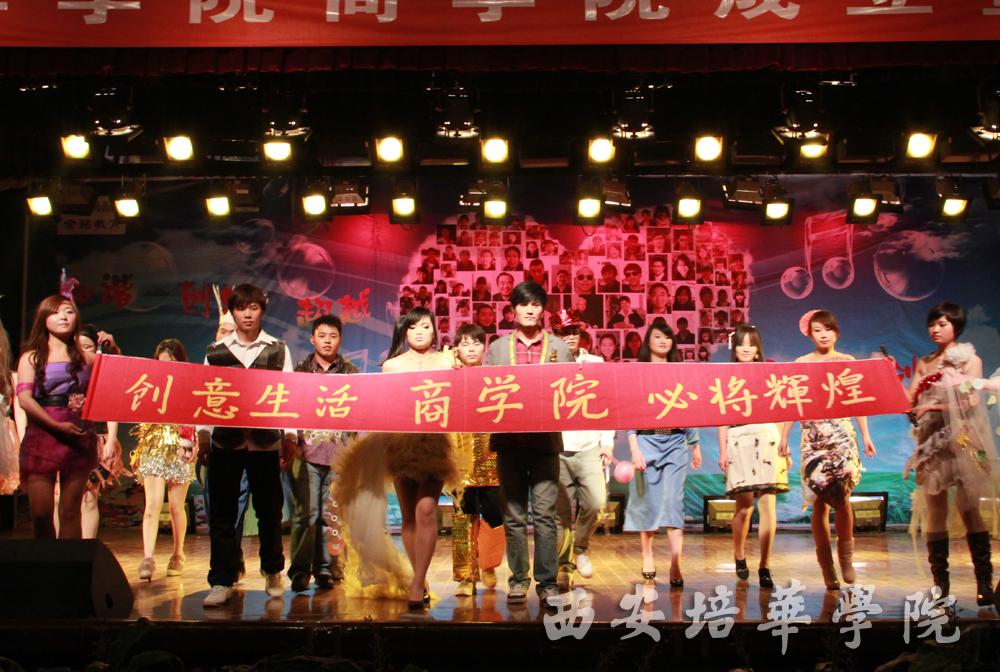 本场晚会分为新生、成长、追梦、辉煌四个篇章。一曲《我们的时代》拉开了晚会帷幕,动感的音符、欢快的节奏声使得场内气氛瞬间达到沸点。在场的同学们借助微博平台积极互动,传递出对商学院和培华大家庭的美好祝福。第二篇章成长中由各院(部)、处(室)带来的精彩的节目,学生处选送的二胡《赛马》热烈而欢快;就业办选送的现代舞《Future》青春气息十足,带动全场观众一起欢呼雀跃。商学院金晨朗诵的《成长》讲述了一个正在成长的商学院的青春勃发的气息,他激情澎湃的朗诵带观众们领略属于青春的欢快乐章。第三篇章追梦中《民族舞》可谓整场晚会的亮点,台上演员精致的服装、优美的动作、丰富的表情博得场内观众阵阵掌声,他们细腻、真挚的表演感染了在场所有观众。晚会特殊嘉宾——学生处李爱琴处长精彩的太极拳表演将整场晚会推向高潮。在第四篇章辉煌中,话剧《三国杀》通过模拟游戏的趣味形式深入浅出的传达出应该珍视时间、把握机遇的教育意义。创意时装秀将时尚元素于环保理念相结合,展示出培华学子特有的才华。