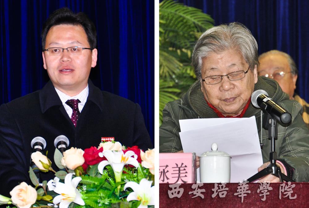 姜波理事长致欢迎辞,他对参会的所有嘉宾表示欢迎,向在西安事变中作出贡献的爱国志士们表示崇高的敬意和深切的怀念。他指出,要牢记新中国的诞生是无数革命先烈抛头颅洒热血换来的,在新的形势和任务面前,要进一步加强广泛的爱国主义统一战线,大力弘扬“西安事变”中所体现出的伟大的爱国主义精神和民族团结精神,使之成为推进祖国统一大业和中国特色社会主义伟大事业的强大精神动力。培华建校80多年来始终不忘对师生进行爱国主义教育,学校专门成立了红色文化研究会,多次组织师生参加革命传统教育、爱国主义教育,对师生树立正确的人生观、价值观起到了很好的作用,增强了广大师生爱党、爱国、爱校的热情,激发了广大师生教书育人、刻苦学习的自觉性。他希望广大青年学子铭记西安事变的精神,勿忘爱国情怀,继承先烈遗志,弘扬爱国精神,为建设和谐社会、和谐校园做出应有的贡献。