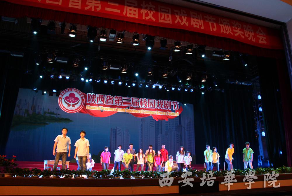 12月8日晚由中共陕西省委宣传部、陕西省文学艺术界联合会、陕西省教育厅、共青团陕西省委、陕西省戏剧家协会共同主办,陕西省戏剧家协会承办的陕西省第三届校园戏剧节,在陕西师范大学音乐厅举行闭幕式演出及颁奖活动。来自全省30余所高校的千余名师生和有关方面负责人出席了颁奖仪式,我校副院长段茂贤、艺术教育中心周玉昆主任、强艺馨老师以及参演同学到场观看了演出。我校参演剧目音乐剧《生死概率》在闭幕式上的精彩演出赢得了专家、领导以及兄弟院校的热烈反响。