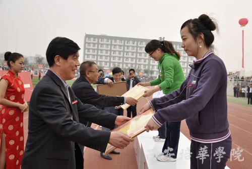经过两天的激烈比赛,我校第十届田径运动会于10月21日下午正式闭幕。理事长姜波,院长陈明华,党委书记王斗虎,副院长杨定君、段茂贤、王根性、刘应南、王栓才,院长助理姜朗及各院系、处室领导出席闭幕式,所有参赛运动员、裁判员和万余名师生参加了闭幕式。杨定君副院长主持大会,校领导为本届运动会的获奖单位颁奖。
