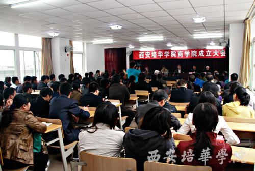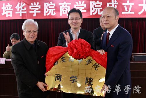 院长陈明华宣读了学校理事会关于合并经济管理学院、国际商学院成立西安培华学院商学院的决定,姜波理事长给商学院授牌。