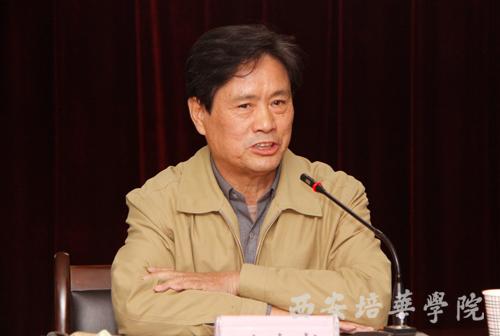 姜波理事长在讲话中指出,培华八十余年的办学历程,取得了辉煌的成就,积累了丰富的经验,已经并将继续成为中国民办高等教育的一面旗帜,随着学校的发展和社会的变革,如何更好地实现师资、科研的资源共享成为我们亟待思考的一个重要问题。如何凝练办学特色、教育特色、每一个专业如何构建教师团队、如何让我们从民办高校的群体中脱颖而出并成为领跑者,成了培华人的目标和梦想。基于这样的初衷和目的,我们合并成立了商学院,也掀开了学校发展历史上一个新的篇章。商学院的成立,一方面要求我们继续深化改革,思想解放一些、胆子大一些、步子稳一些,希望每一个干部、每一个教师都能成为改革的旗手,争取每年、每月都能有新的思路;另一方面,新成立的商学院要继续突出办学特色,不负众望,商学院不仅要在培华叫出名气,也要用我们的努力在陕西高等教育中办出成绩、办出水平;加强教学改革和加强队伍建设的同时,希望商学院在新的领导班子的带领下,能够团结奋进,真抓实干,继续扩大影响,让教师们走出去,让学生们走出去。