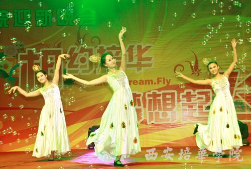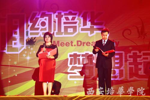 9月26日晚,由西安培华学院,西安音乐广播FM93.1和中国移动陕西分公司联合举办的“相约培华,梦想起飞”2011迎新晚会在我校体育场隆重举行。我校党委书记王斗虎,副院长杨定君、段茂贤、王根性,西安人民广播电台音乐台台长穆西娟女士,中国移动陕西公司西安分公司副总经理张宇铎等出席晚会。各院(部)、处室领导以及师生代表五千余人共同观看演出。