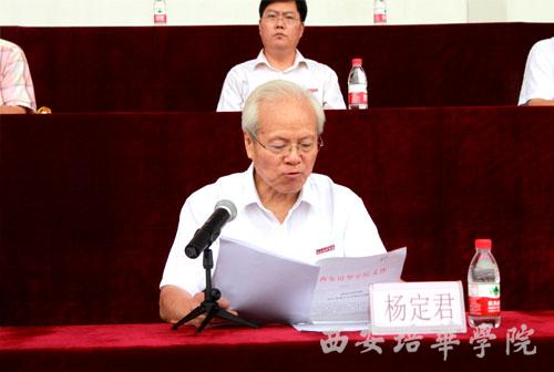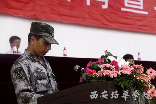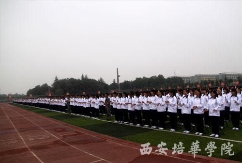 大会在庄严嘹亮的国歌声中正式开始,杨定君副院长宣读了《西安培华学院2011级新生入学教育实施方案》,就本次军训的时间安排、地点分布、连队编制及训练内容和要求等作了周密细致的部署。王斗虎书记向军训团授旗,正式委托省军区教导大队对我校2011级新生进行施训。