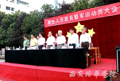 9月4日,我校2011级新生入学教育暨军训动员大会分别在长安校区和高新校区隆重举行。来自全国各地的6000余名统招新生相聚培华,以良好的精神面貌迎接入学教育第一课。我校院长陈明华,党委书记王斗虎,副院长陈胜秋、杨定君、段茂贤、王根性、刘应南、王拴才、院长助理姜朗,以及各院(部)、处室领导参加大会。段茂贤副院长主持大会,院长陈明华作了重要讲话。