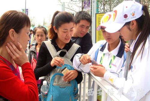 我校志愿者20个小组、在贵宾接待处、出入口管理处、票务中心、长安花谷、媒体中心等岗点上,以良好的适应能力和较强的服务意识得到了园区管理人员的充分肯定。尤其是在轮椅租赁处服务的04组更是用完美的服务迎来了最近几天第一个轮椅租赁处的零投诉日。