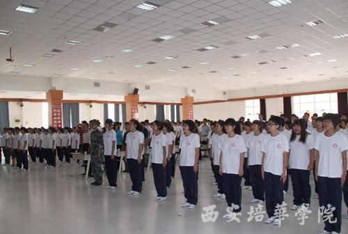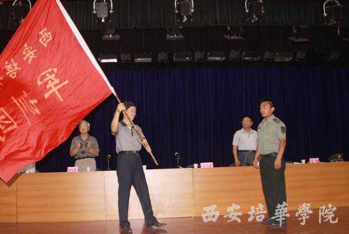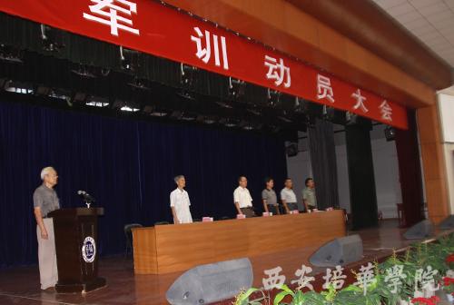 大会在庄严嘹亮的国歌声中正式开始,段茂贤副院长宣读《西安培华学院2011级新生入学教育实施方案》,就本次军训的时间安排、地点分布、连队编成及训练的内容和要求等做出了周密细致的部署。王斗虎书记向军训团授旗,正式委托省军区教导大队对我校新生进行军事培训。