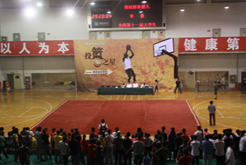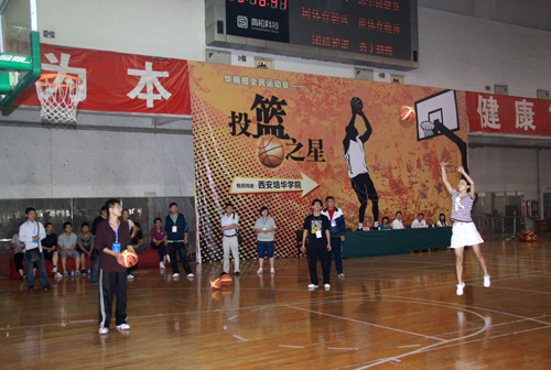 5月29日,由我校和华商报联合举办的全民运动会——“投篮之星”活动在西安电子科技大学体育馆举行。出席本次比赛的嘉宾有洛杉矶奥运会中国代表队国旗手、西北工业大学男篮主教练王立彬,省篮球协会副主席、我校理事长姜波,西安电子科技大学体育部主任徐国富教授,华商报社副总编李明,华商报社文体娱乐主编彭惠,华商报社体育专刊部主任杨晓波。本次比赛吸引了超过三百名篮球爱好者踊跃参赛,比赛现场精彩纷呈,充满欢声笑语。