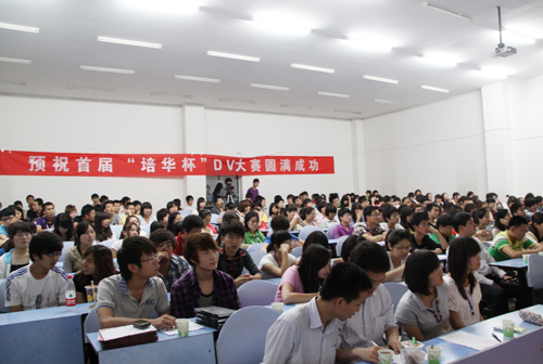 5月30日晚7时,由我校招生办主办、校园记者团承办、影视爱好联盟协办的首届“培华杯” DV大赛在我校长安校区J101教室举行决赛。我校艺术教育中心主任周玉昆、团委书记赵君慧、新闻系主任杜萍、招生办公室宣传科科长柳雨、艺术教育中心强艺馨老师担任了本次比赛的评委。特邀嘉宾招生办公室副主任席小武老师莅临本次比赛现场,各社团负责人、各院系学生会负责人及300余名学生观看了比赛。