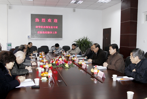 2011年是我校迎接本科教学合格评估的迎评年。1月11日上午,省学位办主任孙朝、陕西师范大学原常务副校长李钟善、西北大学原常务副校长刘舜康、西北政法大学副校长郭捷一行莅临我校,指导本科教学评估工作。会议围绕我校的办学定位展开深入讨论。院长陈明华、党委书记王斗虎、副院长陈胜秋、杨定君、刘应南、王拴才及教务处、教学督导办、本科评估办等部门有关领导出席了座谈会。