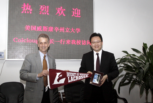 1月14日下午,美国威斯康辛州立大学colclough院长率领代表团一行4人来我校访问。我校理事长姜波,副院长杨定君,国际交流中心主任秦泉安,实训与就业指导中心主任王文勇热情接待访问团一行,并在会议室与客人就两校开展国际文化学术交流等问题进行亲切座谈。