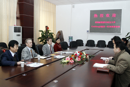 在座谈会上,姜波理事长首先代表学校对威斯康辛州立大学colclough院长一行的到来表示热烈的欢迎。姜波理事长说,西安不仅是世界闻名的古都,同时也是中国民办高等教育的硅谷,培华是中国创办最早的民办大学之一,也是新中国的第一所女子大学,至今已有83年的办学历史,学校从1984年开始就同国外40多所高校建立友好的交流与协作关系,有着丰富的国际交流与合作的经验。他还介绍了我校的办学历史,学科建设,信息化建设,国际交流等情况,并就我校和威斯康辛州立大学建立友好院校、开展深层次、战略性和长期性的交流和合作,引进国外原版教材和优势学科课程,加强留学生互换和重点专业定向培养,开展在校生赴美带薪实习和美国文化学习,启动两校教师的培训和高端访问等文化和学术交流提出了具体建议。