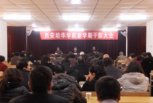 2月25日下午,我校在长安校区召开干部工作会议,全体校领导、各院(部)、处(室)科级以上干部100余人出席了会议。会议由王斗虎书记主持。陈明华院长对学校2011年新学年工作进行部署。姜波理事长出席会议并作重要讲话。