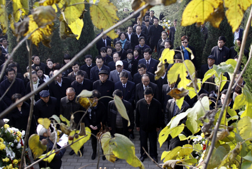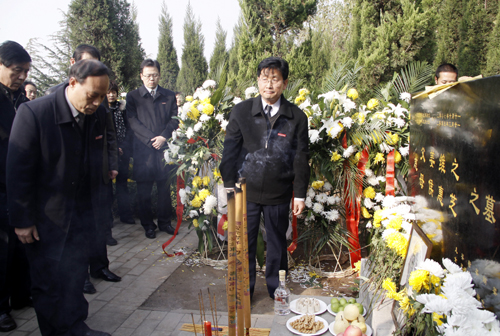 冬日的少陵塬气象庄严,俯视樊川,潏河如带,西观神禾,起伏如画。墓园松柏苍翠,菊花掩映。祭祀仪式开始,首先由姜维之先生长子代表亲属行祭祀礼。我校王拴才副院长代表学校行祭祀礼。之后,姜波理事长代表学校理事会敬献花篮,三鞠躬。陈胜秋副书记代表学校党委敬献花篮。段茂贤副院长代表我校行政敬献花篮。王根性副院长代表我校工会敬献花篮。姜维之先生子女依次敬献花篮。院长陈明华教授代表学校宣读祭文,表达哀思。
