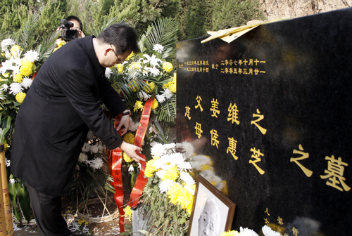 维公元二零一零年十一月二十日,岁次庚寅,时维孟冬,十月十五,著名教育家姜维之老先生逝世三周年之际,西安培华学院全体领导暨中层干部谨以花篮果馔之仪致祭于老校长之墓前曰: