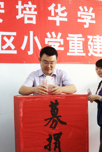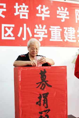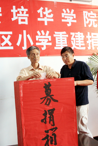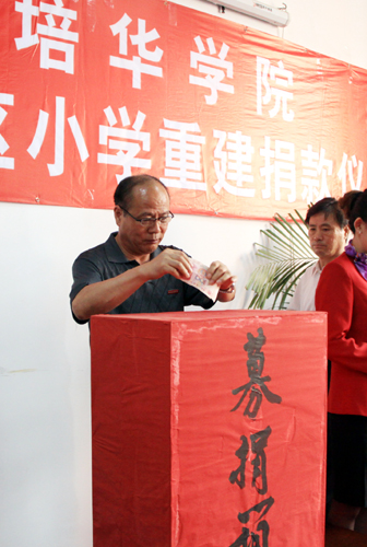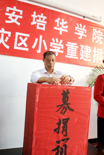 9月17日下午,我校对口援建平利县老城区凤凰小学灾后重建捐款仪式在长安校区举行。陈明华院长、王斗虎书记、副院长杨定君、段茂贤、刘应南、王拴才和院长助理姜朗出席了捐款仪式,并带头捐款。各院(部)、处(室)主要负责同志捐献了本部门募捐的款项。因公务在外的姜波理事长、陈胜秋副院长、王根性副院长也委托代为捐款。副院长、援建工作领导小组副组长王拴才主持捐款仪式并作简短讲话。