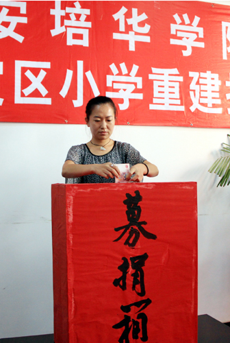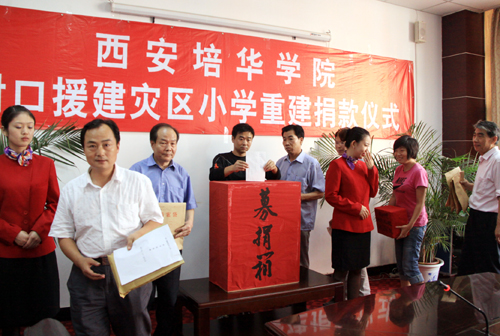 为了积极响应省委、省政府的号召,认真贯彻落实省教育厅关于对口援建工作部署,学校高度关注和重视,专门成立了以姜波理事长为组长,王拴才副院长为副组长的对口援建平利县老城区凤凰小学工作领导小组。全校教职员工和学生积极行动,纷纷向灾区小学伸出援助之手。短短两天时间,已募捐七万余元。