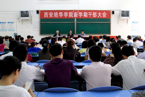 8月29日上午,我校新学期干部大会在长安校区召开,党委书记王斗虎传达了全省教育工作会议精神以及国家教育部党组成员、部长助理林蕙青在陕宣讲全国教育工作会议精神和《纲要》精神的要点。王书记对党委新学期重点工作做了部署。院长陈明华教授传达了暑假期间姜理事长对学校各项工作的重要指示,安排部署了新学期学校重点工作。会议由副院长杨定君教授主持。