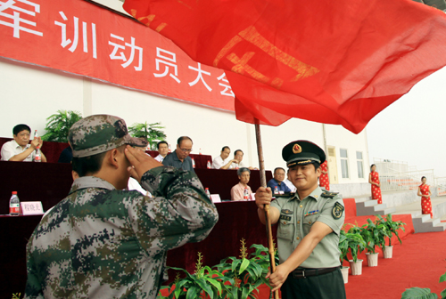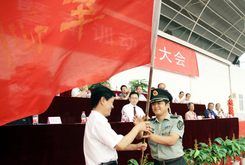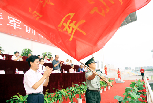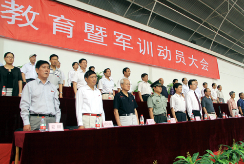 大会在庄严嘹亮的国歌声中正式开始,段茂贤副院长宣读《西安培华学院2010级新生入学教育实施方案》,就本次军训的时间安排、地点分布、连队编成及训练的内容和要求等做出了周密细致的部署。王斗虎书记向军训团授旗,正式委托省军区教导大队对我校新生进行军事培训。