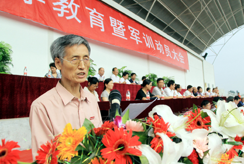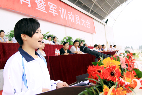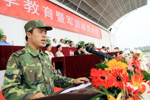 军训团教导员韩鹏代表所有教官介绍了部队的优良传统和严格的军事作风,鼓励同学们积极参与军事训练,服从指挥,严格进行训练,增强组织纪律性,弘扬求真务实、艰苦奋斗的优良作风,把自己锻炼成一名具有高尚情操、优良品德和良好形象的大学生。新生代表罗艳军同学代表全体新生表示,将在今后的军训生活,认真遵守各项规章制度,尊敬师长,团结互助,努力学习,立志成才,用实际行动报效祖国。