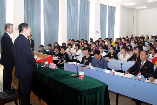 签字仪式后,院长陈明华教授陪同霍华德校长一行参观了学校并邀请霍华德校长向我校外国语学院和财会学院200多名学生做了“美国高等教育现状”和“美国阿肯色州立大学向中国推荐的相关课程及项目”的专题讲座。
