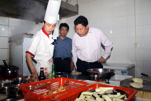 李广利秘书长对我校维护校园安全稳定所做的努力给予高度的评价,并就学校安全稳定制度建设、工作重点以及存在的隐患与我校领导进行了深入交流并提出一些建设性意见和建议。长安区区委书记吕健,分析了长安区安全稳定的工作重点,并指出校园安全稳定工作要做到长效管理、预防管理,确保每位师生的安全。最后,督查组一行在姜波理事长的陪同下,来到学校综合楼就学生用餐卫生、食品安全、饭菜价格一一作了调查。