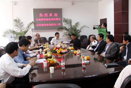 月20日下午,在省委副秘书长李广利的带领下,省委、省政府综治维稳督查组一行十余人在长安区委书记吕健等有关领导陪同下莅临我校检查安全稳定工作。我校理事长姜波、院长陈明华、副院长王根性在会议室亲切接待督查组一行,并就我校安全稳定工作情况向督查组领导作了汇报。