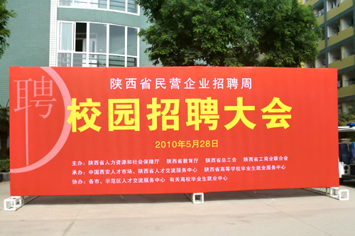 5月28日,由陕西省人力资源和社会保障厅、陕西省教育厅、陕西省总工会、陕西省工商业联合会主办的2010年陕西民营企业招聘周——“千家民营企业进校园招聘活动”在我校成功举办。参加本次招聘活动的有来自省内130余家企业,提供了涉及文职、法律、计算机、电子、英语、外贸、营销等行业的数百个岗位。