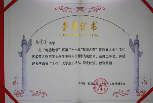 2010年5月11日晚上,由共青团陕西省委主办的陕西省第二十一届“校园之春”文化艺术节主持人大赛总决赛在西安交通大学宪梓堂隆重举行。来自陕西省各大高校的十五名优秀选手同场角逐最高殊荣。