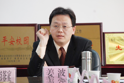 姜波院长代表学校向辛勤工作在“双创”工作第一线的工作人员表示感谢,并对获得2008年度表彰的单位和个人表示祝贺。在讲话中重点指出:近年来,随着我国经济社会的迅速发展和各项改革的不断深入,学校安全稳定工作面临的新挑战,希望学校各有关部门认真做好五方面工作:进一步增强政治敏锐性,维护好学校的政治稳定;进一步理解平安、文明校园的深刻含义,通过广大师生的广泛参与,在各方面力量的推动下,设置和创立良好的校园环境,并使这种校园环境得以保持,形成稳定化、秩序化、理性化、和谐化育人环境。进一步完善工作机制,确保目标任务上台阶;进一步加强制度建设,确保“文明校园”创建组织到位,责任明确,运转有序;进一步创新思路,创新工作方法,切实维护学生的利益,让师生成为创建活动的最大受益者。