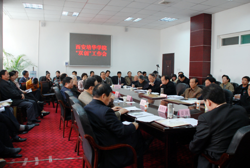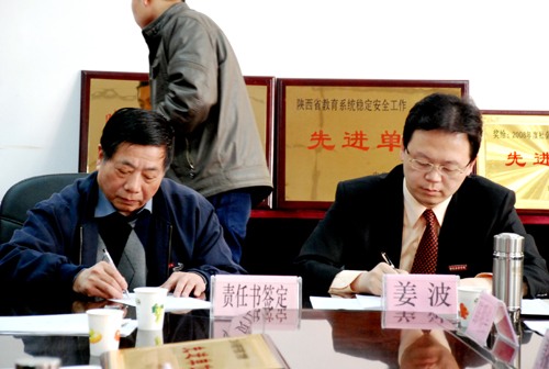 会上,副院长周振豪宣读了表彰决定。医学院等12个单位荣获双创工作先进单位,宁书同等48人荣获先进个人。姜波院长为获奖代表颁发了奖牌和奖金。教务处和国际商学院代表介绍了“双创”工作的经验。各单位负责人与姜波院长签订了《2009年西安培华学院消防安全责任书》、《安全稳定责任书》和《创建文明校园活动责任书》。