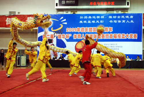 开幕式现场,首先进行了健美操、舞龙表演,随后由前国手王立彬带领各高校的领导和省委领导们进行了一场精彩的表演赛。本届比赛分两组进行单循环,每组前两名争夺最后的冠、亚、季军,将持续至5月中旬结束。