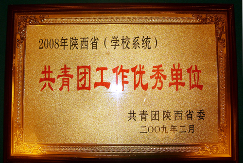 2009年2月27日,在陕西省共青团学校工作会议上传来喜讯,我校荣获2008年陕西省(学校系统)“共青团工作优秀单位”荣誉称号,院长姜波荣获“支持共青团工作好校长”荣誉称号。