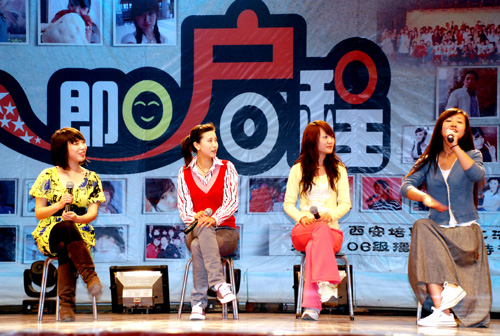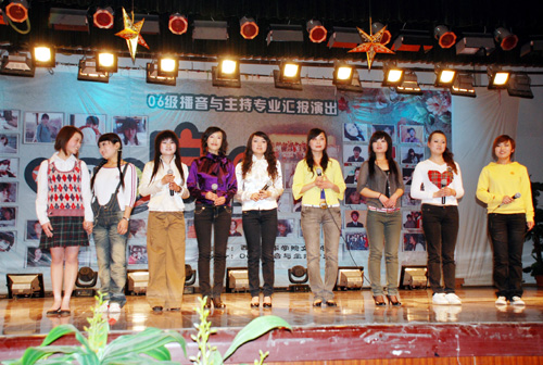 3月31日晚,由我校文法学院主办、06级播音与主持专业承办的“即日起程——06级播音与主持专业汇报演出”在我校长安校区大学生活动中心举行。院长姜波、党委书记王斗虎、副院长杨定君、文法学院副院长车宝仁、招生办公室主任姚文静、团委书记赵君慧、教务处处长肖建军以及我校各院(系)领导、老师、学生到场观看。