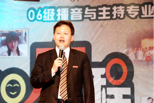 晚会最后,姜波院长发表讲话。姜院长说06级播音学生的汇报演出很成功,看了演出后非常感动,通过晚会不仅看到了我们学生的成长,也看到了学校的发展。他希望同学们要学会互助、学会忍耐,现实的面对未来;并且鼓励同学们要借着年轻的力量,为梦想而努力奋斗。另外,姜院长还谈到了我校未来的发展情况,强调09年要全面狠抓建设问题,将学校各项硬件设施建设齐全,为学生提供更好的学习、生活环境;同时他感谢各级领导、全校师生对学校各项工作的支持,相信在全体培华人的共同努力下,我们的学校明天会更好。