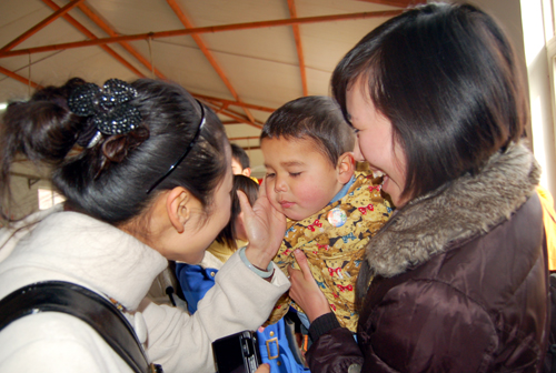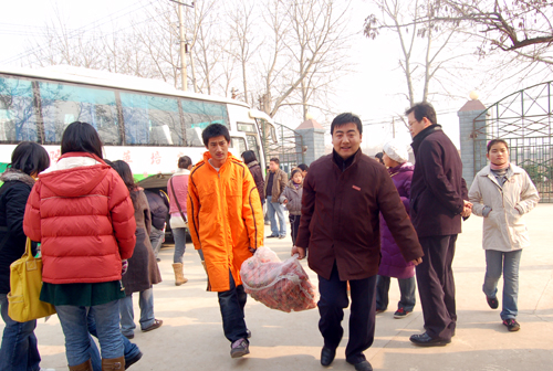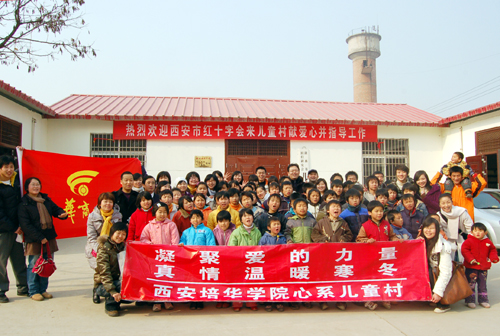 12月31日上午,刚刚在北京荣获“2008年中国最值得人民记忆的十大公益模范人物”的姜波院长,在安排完学校的日常事务后,和我校20多名师生、华商报员工代表,一起前往西安东郊白鹿原上的陕西省回归研究会儿童村,带上猪肉蔬菜水果、牙膏毛巾、食用油、新年挂历等日用品,去看望在那里生活的缺少关爱和亲情的80多名孩子。得知这个消息,倍受感动的西安达博教育、阿斯顿英语学校和来自陕西师范大学、西安外国语大学、长安大学的十几位师生也一同前往。姜院长及热心人士的的这一份关爱,就像冬日里的一缕阳光温暖孩子们的心灵,让孩子们感受到寒冬里的温暖。