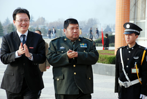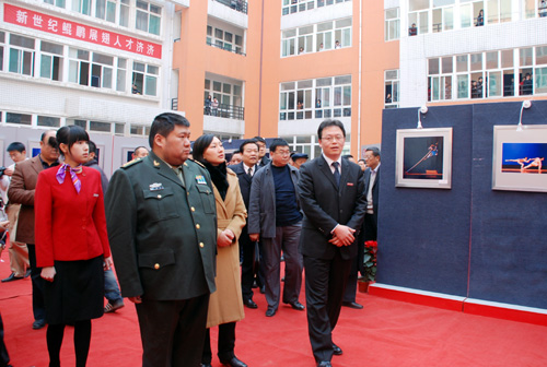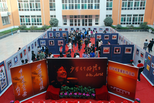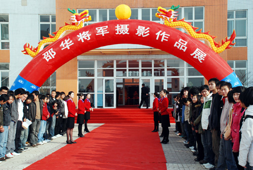 12月12日,“邵华将军摄影作品展”在我校长安校区隆重开幕。这次展览是邵华将军摄影作品首次走进陕西,走进高校。邵华将军之子、全国政协委员、全国青年联合会常委、中国人民解放军军事科学院战争理论与战略研究部副部长毛新宇及夫人全国妇联执委、总参管理保障部助理员、中国女摄影家协会副秘书长刘滨,陕西省政协常委、原中共陕西省委秘书长、省书法家协会副主席王改民,陕西省作家协会常务副主席、党组书记雷涛,著名爱国将领杨虎城将军的女儿杨拯美等省市领导亲临现场。院长姜波,副院长陈明华、陈胜秋、杨定君、周振豪、李天禄及200多名师生代表出席了开展仪式。开展仪式由党委书记王斗虎主持。