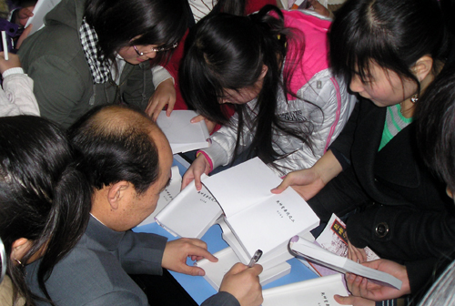 报告会现场,两位教授“知其难、守其苦、耐其薄、测其险,方可处世”、“水,能屈能伸,可软可硬,虽然潜伏在低处,却是所有生命都不可或缺的最富生命力的物质”、“逆水行舟,不进则退”的经典讲演赢得了阵阵掌声。报告会结束后,张万准教授还向在场的同学赠送了自己的最新著作《乾坤堂杂说之二》。