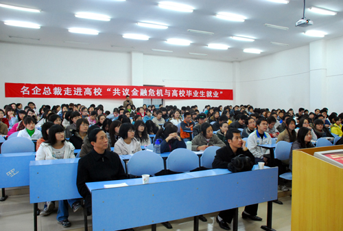 由陕西省社会科学院长安文化研究中心承办的此次报告会针对金融危机席卷全球的现状,组织邀请知名企业总裁、学者走进高校理性而客观地评估金融危机对于大学毕业生就业的影响。系列报告会相继走入西安电子科技大学、西北工业大学、西北大学、西安建筑科技大学、西北政法学院、陕西师范大学、西安交通大学、西安外国语大学、西安培华学院等十四所陕西高校,为企业与大学毕业生搭建起相互交流的平台。
