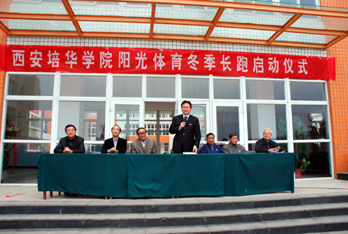 为响应国家教育部、国家体育总局关于开展阳光体育工程的通知,经学校运动委员会决定,我校于十一月六日下午五点在一号教学楼西广场召开了冬季长跑活动启动仪式。院长姜波,副院长杨定君、周振豪,财会学院院长李学智,经济管理学院院长陈玉柱,教务处处长肖建军参加了启动仪式。