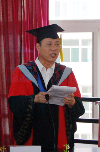 随后,受姜波院长委托,杨副院长讲话。他鼓励同学们走向社会后,要继续努力,清清白白地做人,认认真真地做事,争取做出成绩来。同时还嘱咐大家要注意安全,保重身体,记着培华永远是他们的“家”。质朴的话语令同学们很是感激。